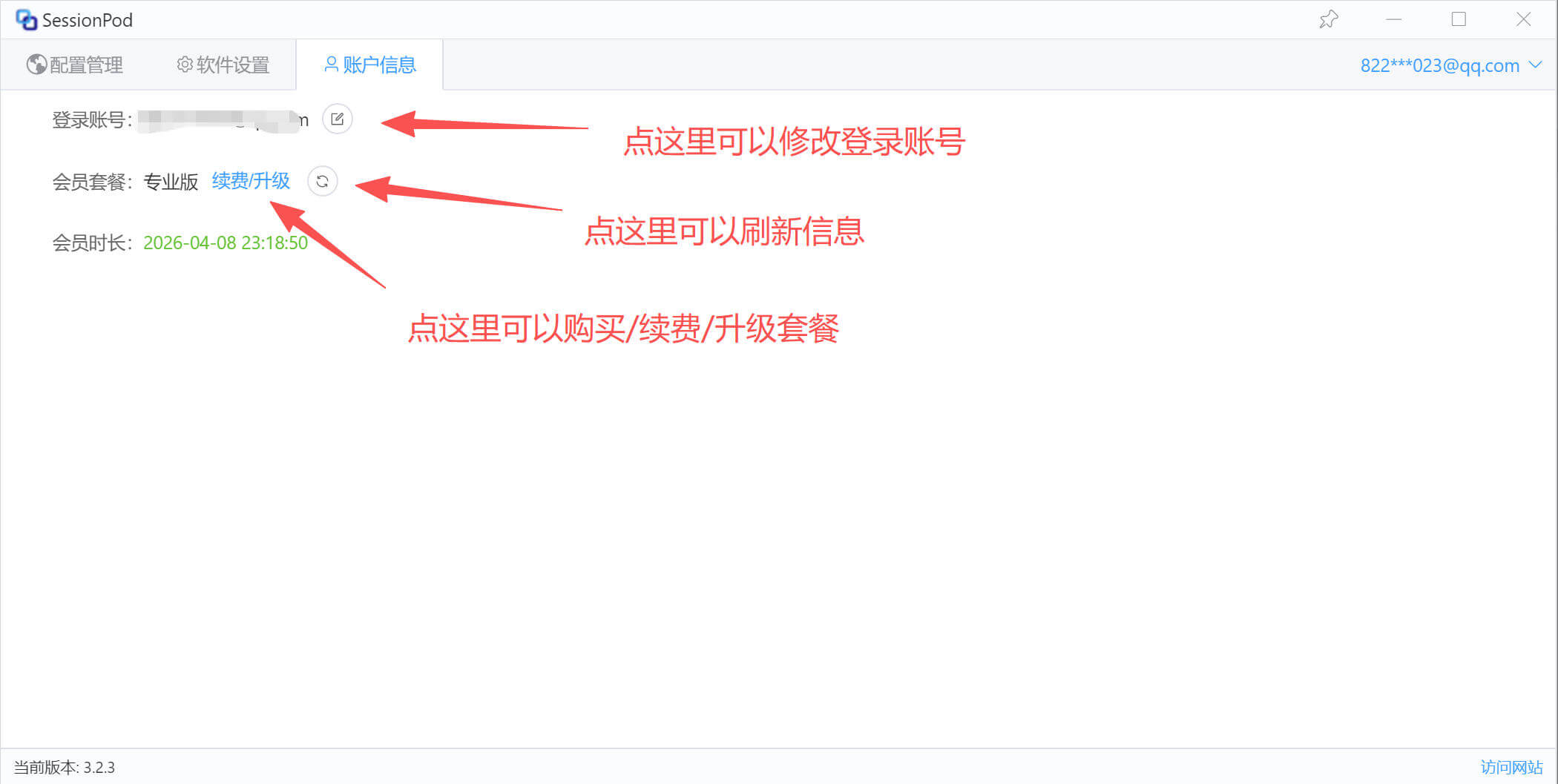 点击软件左侧菜单“账户信息”,可以查看到软件账户有关信息,如下图: