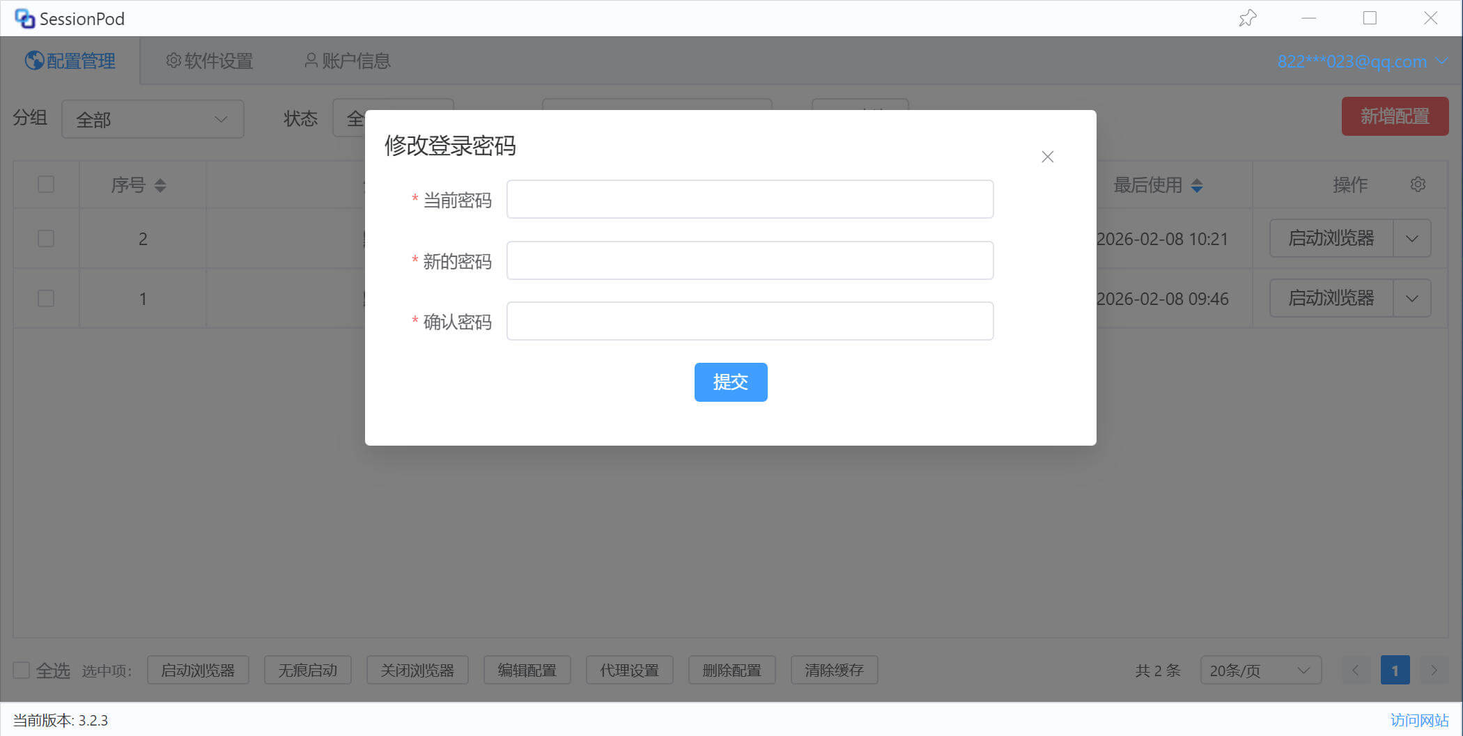 如下图,先输入当前登录密码,设置新的登录密码,点击“提交”按钮,即可完成密码修改操作。