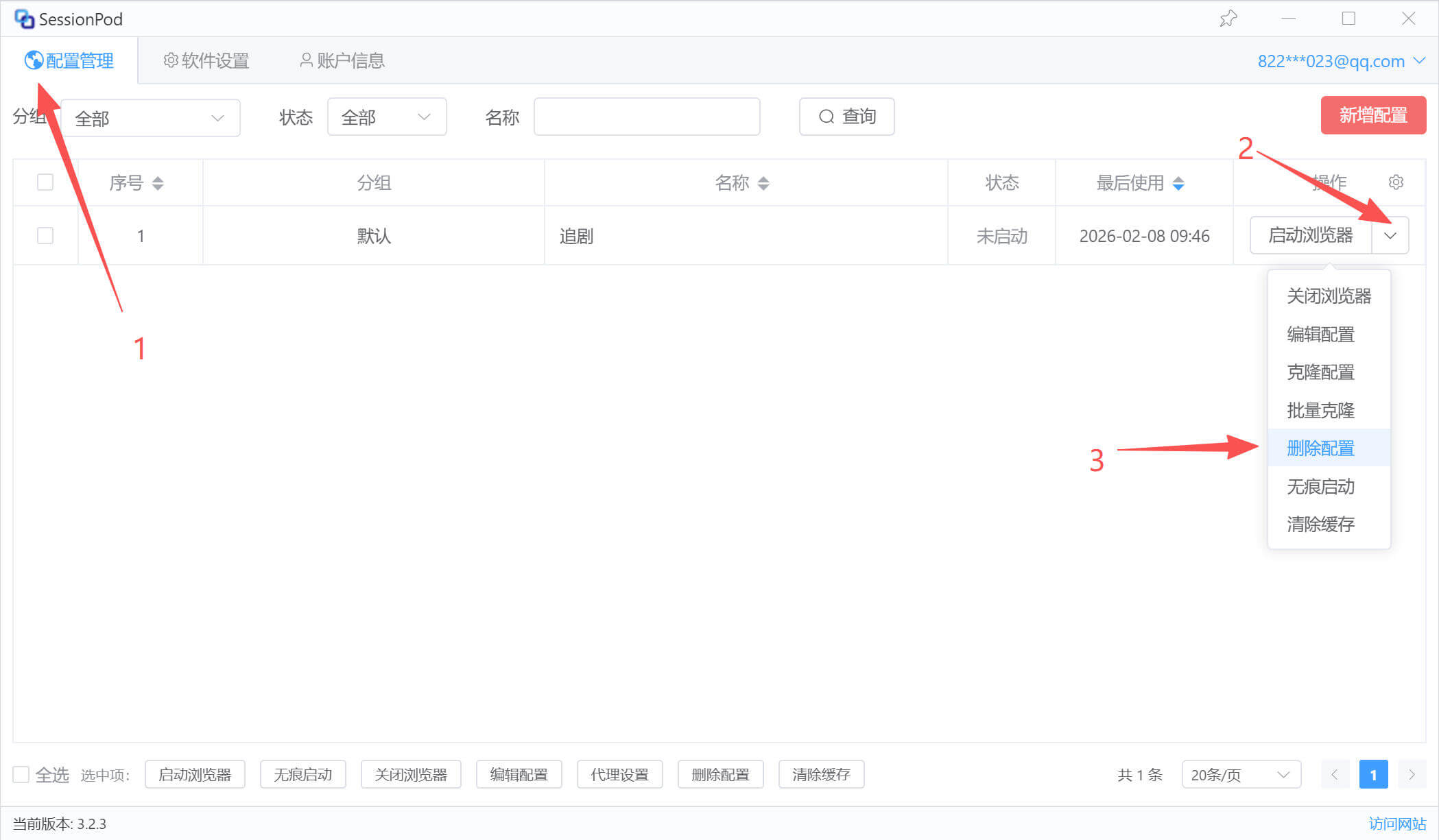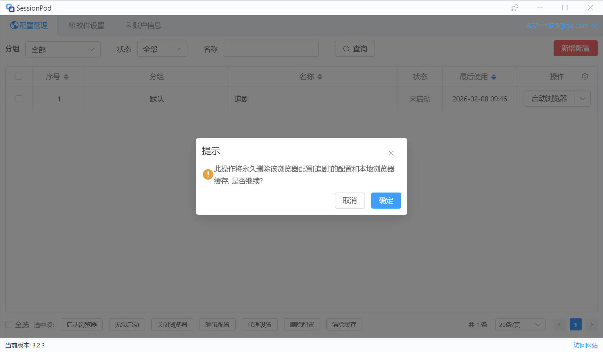 如下图所示:点击“删除配置”按钮。