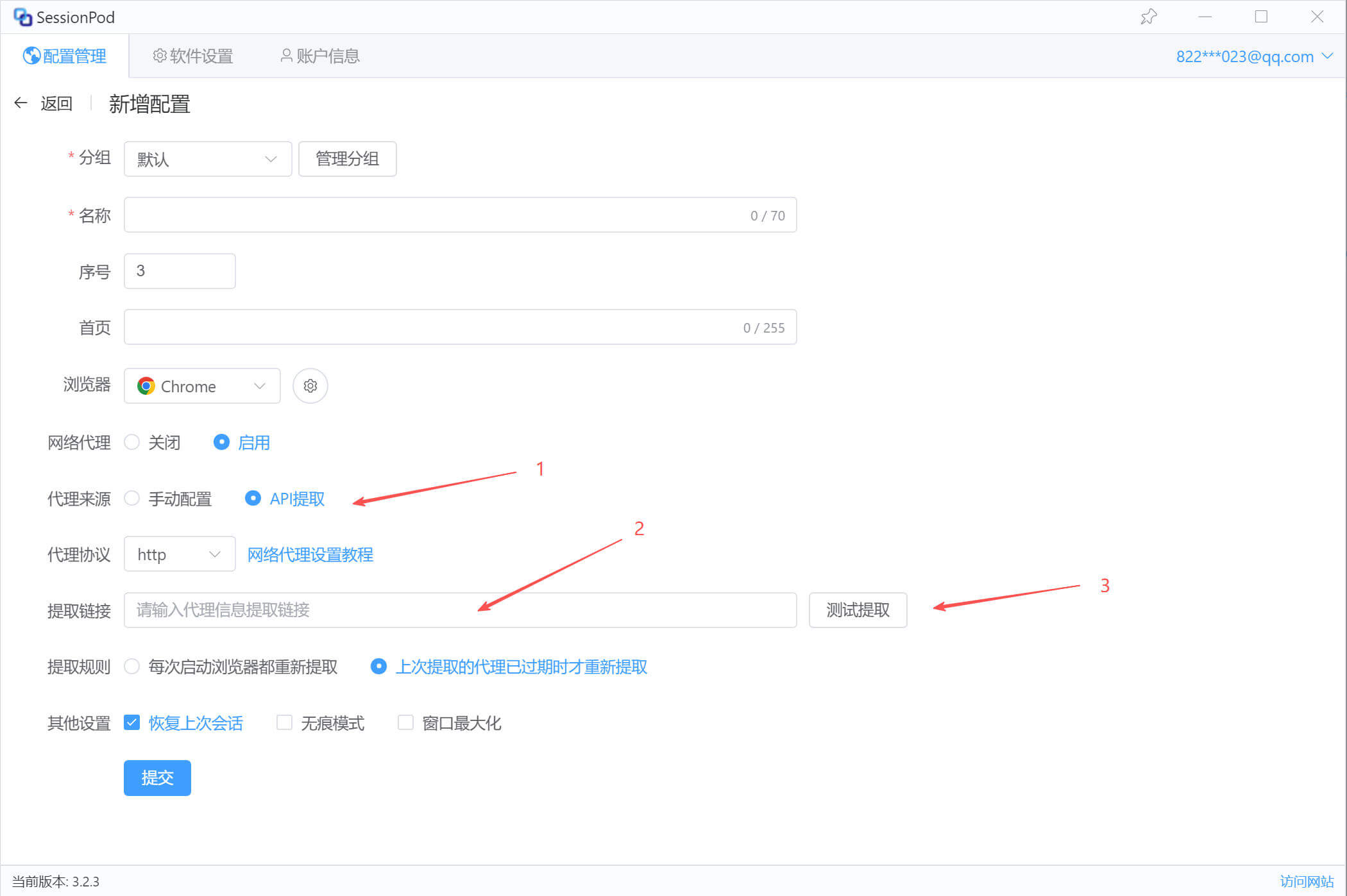 有的网络代理商提供通过API接口提取网络代理,这类网络代理通常是动态IP,每次提取的代理信息有过期时间。 软件支持通过API接口提取网络代理,并且可以设置网络代理到期后自动重新提取新的代理信息。 开启通过API提取代理,如下图:
